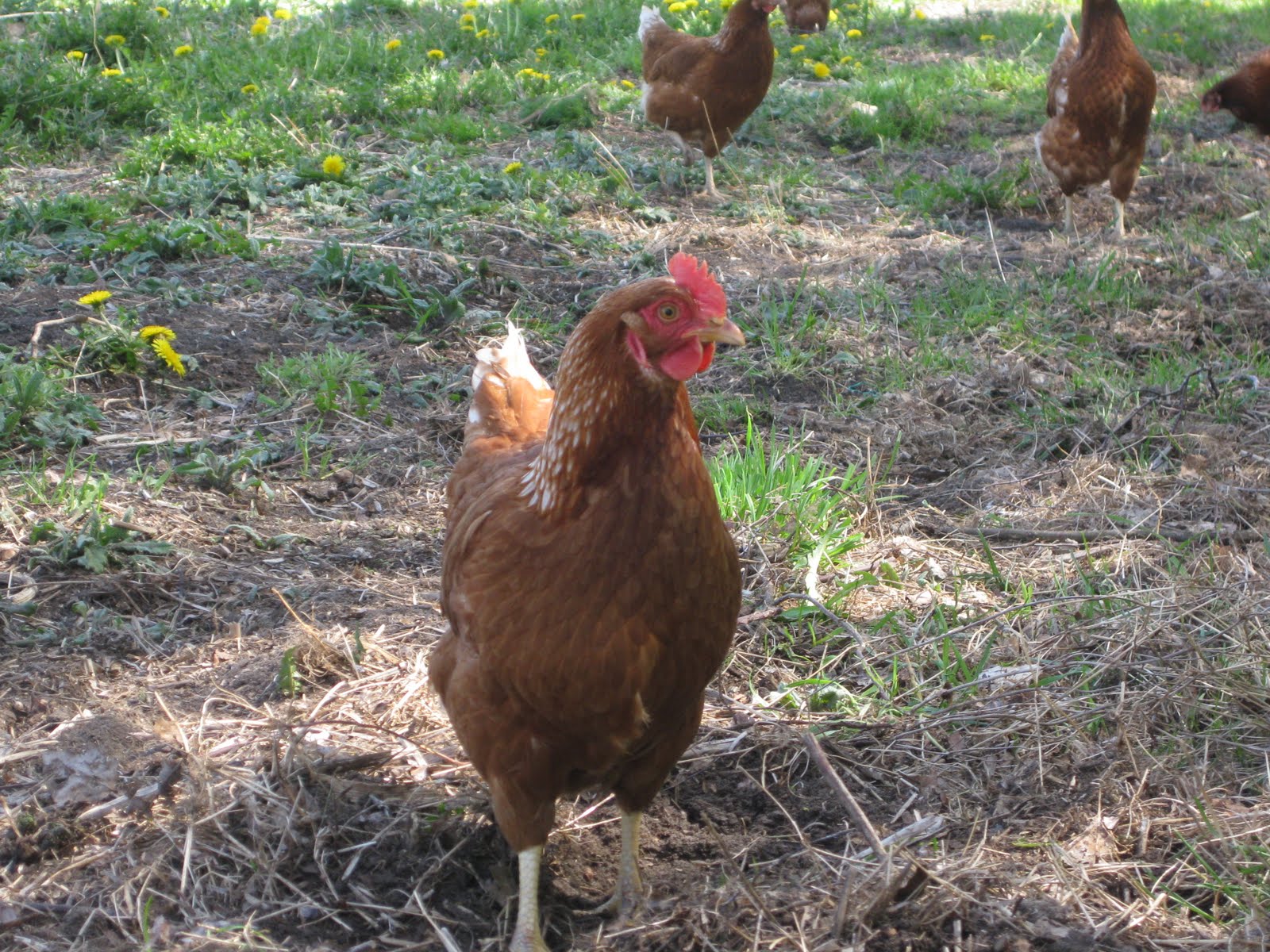 Vi började med att titta på det bortglömda trädgårdslandet där några sparrisskott letat sig upp genom myllan. Hönsen följde ivrigt efter i hopp om att vi skulle börja påta och gräva i jorden. Kanske skulle vi få fram något smaskigt som de kunde hugga in på!