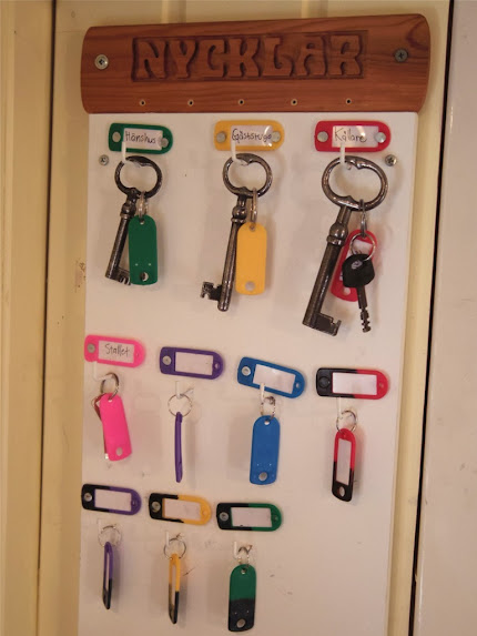 Så när gäster varit på besök och nyttjat den gula nyckeln (gäststugan), så vet de exakt vart de ska hänga den när de beger sig!