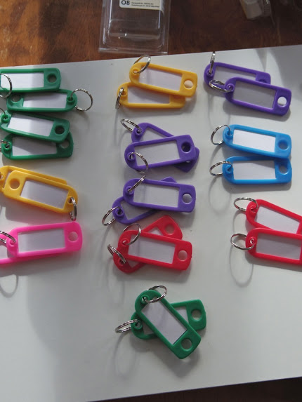 Taggarna parades ihop efter färg. En skulle sitta på brädan, en skulle hänga med nyckeln.