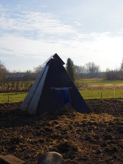 Grisarna har nu fått ett plastjalusi för sin ingång till pyramiden så de kan hålla värmen lite bättre.