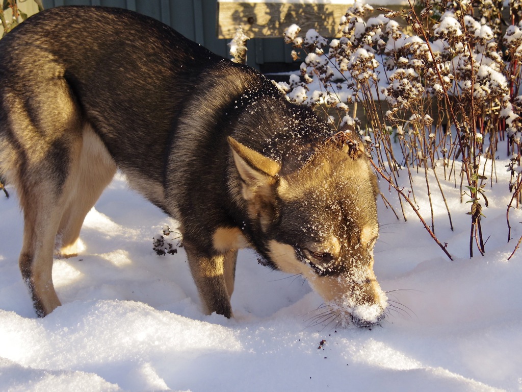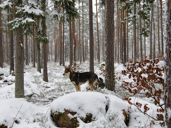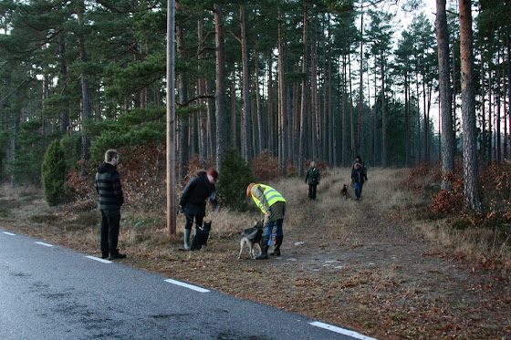 Förra helgen hade vi fullt upp! På lördagen kom ett härligt gäng med lapska vallhundar och dess ägare över till oss på gården. Det var gänget från Raikas kennel förutom deras yngsta tik, det var Astás syster Nikki och hennes ägare samt en valpis på 3,5 månader med tillhörande ägarpar som bor relativt nära! Fullt ös minst sagt! Vi gick en prommis ned till hästhagen och sedan fick de springa och leka på tomten. Astá var som vanligt lite feg i början och tyckte ett tag det var väldigt läskigt med så många hundar överallt. Efter att hon fått lugna ner sig lite och lekt med bara valpen inne ett tag så gick det dock mycket bättre. Vi la spår och hundarna skötte sig väldigt fint!