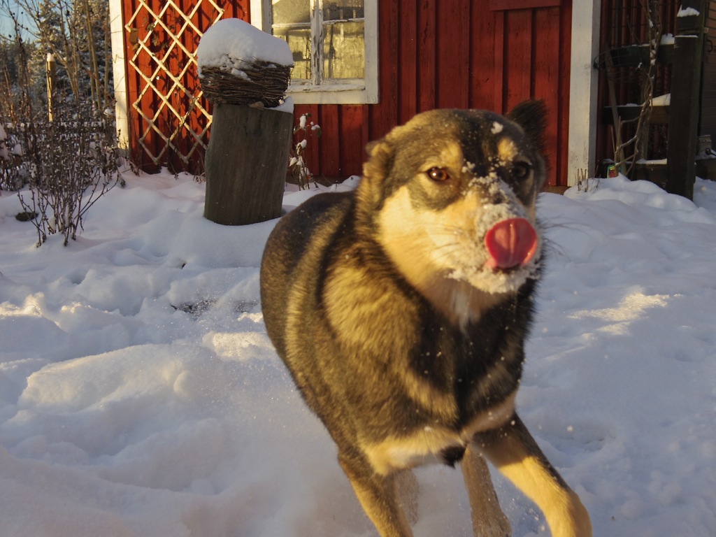 Det negativa med kylan är ju detta elände med vatten till djuren. Nu går jag och knackar sönder isen ett par-tre gånger om dagen samt fyller på med varmt/ljummet vatten så det inte ska frysa lika fort. Grisarna har fått in mycket mer halm i sin kåta men jag är ändå osäker på om de har tillräckligt så jag ska slänga in mer har jag tänkt, så svårt att veta hur mycket som är tillräckligt!