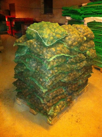 Under dessa två dagar jag varit där så har jag fyllt säckar med potatis (800 kg totalt), rensat potatis (runt 1500-2000 kg), planterat runt 400 salladsplantor, plockat ägg, flyttat ägg, omplanterat blommor och röjt vid kanten av en åker.