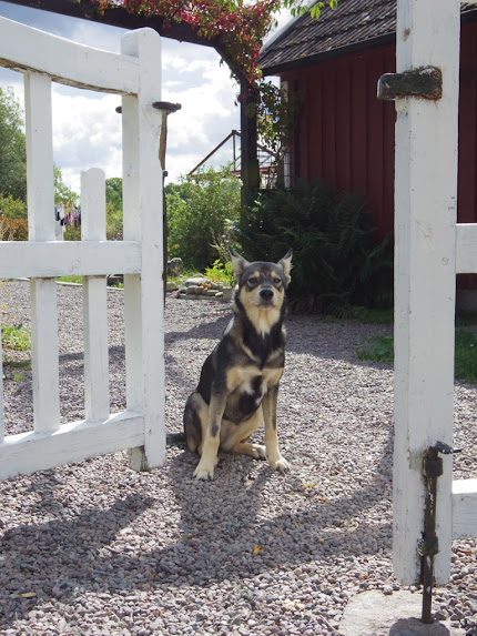 Det som går mindre bra med henne är när människor och hundar kommer hem till oss. Hon skäller som sagt ganska mycket vid dessa tillfällen för att hon blir så glad. Vi försöker därför bjuda hem så många som möjligt som orkar med att ignorera valpen som skäller (hon/de får hälsa först när hon lugnat ner sig) så hon ska bli lite lugnare. Jag tycker det går lite bättre men det beror också på vem som kommer. Vi hade besök här för ett par dagar sedan av ett par vänner och deras rottis/schäfer-tik på 7 år som är otroligt lugn och henne skällde Astá väldigt mycket på. Inte aggressivt utan mer för att få igång henne att leka vilket är väl bättre även om skallen skär i öronen på en själv. Så, som sagt, mer sån träning!